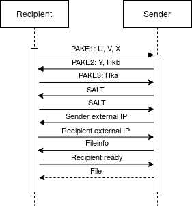 On a high level, croc’s file exchange protocol works in 8 steps: